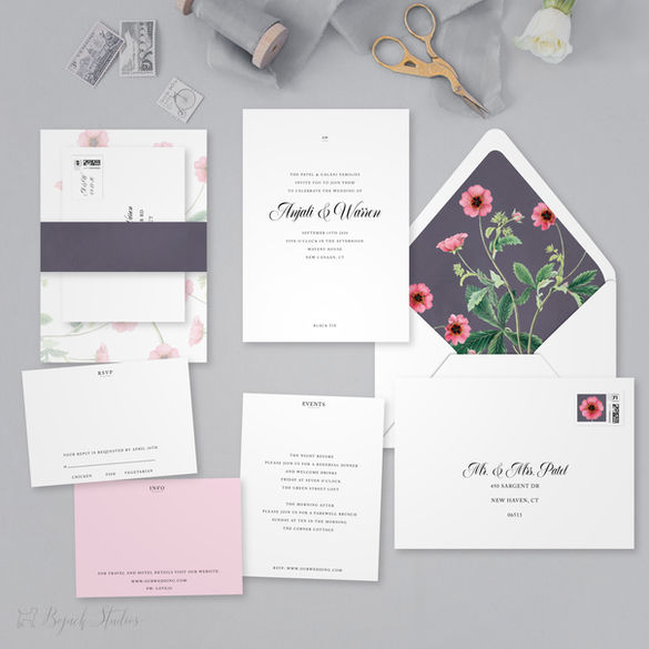 All of our invitations are printed using archival inks and high quality paper stock on a commercial press. Invitations are available as a customized Build Your Own Suite - choose the pieces that make sense for you.