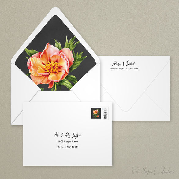 All of our invitations are printed using archival inks and high quality paper stock on a commercial press. Invitations are available as a customized Build Your Own Suite - choose the pieces that make sense for you.
