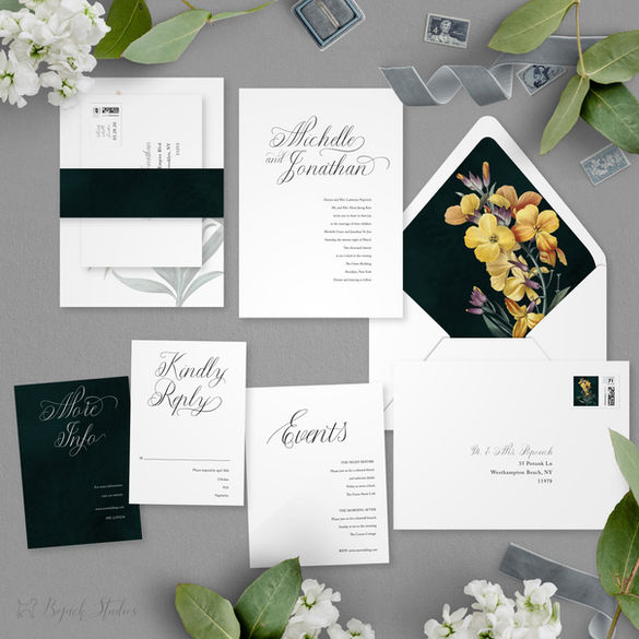 All of our invitations are printed using archival inks and high quality paper stock on a commercial press. Invitations are available as a customized Build Your Own Suite - choose the pieces that make sense for you.