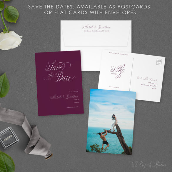 All of our invitations are printed using archival inks and high quality paper stock on a commercial press. Invitations are available as a customized Build Your Own Suite - choose the pieces that make sense for you.
