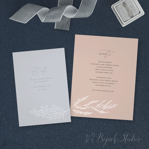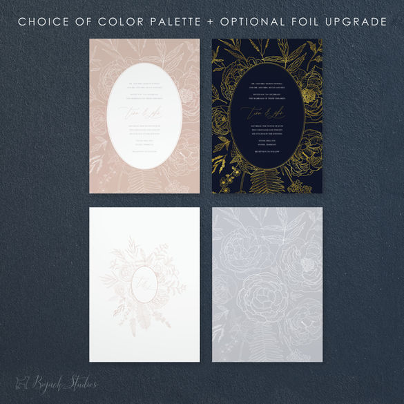 All of our invitations are printed using archival inks and high quality paper stock on a commercial press. Invitations are available as a customized Build Your Own Suite - choose the pieces that make sense for you.