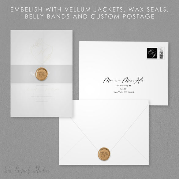 All of our invitations are printed using archival inks and high quality paper stock on a commercial press. Invitations are available as a customized Build Your Own Suite - choose the pieces that make sense for you.