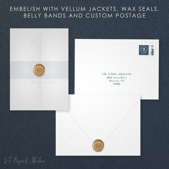 All of our invitations are printed using archival inks and high quality paper stock on a commercial press. Invitations are available as a customized Build Your Own Suite - choose the pieces that make sense for you.