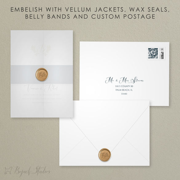 All of our invitations are printed using archival inks and high quality paper stock on a commercial press. Invitations are available as a customized Build Your Own Suite - choose the pieces that make sense for you.